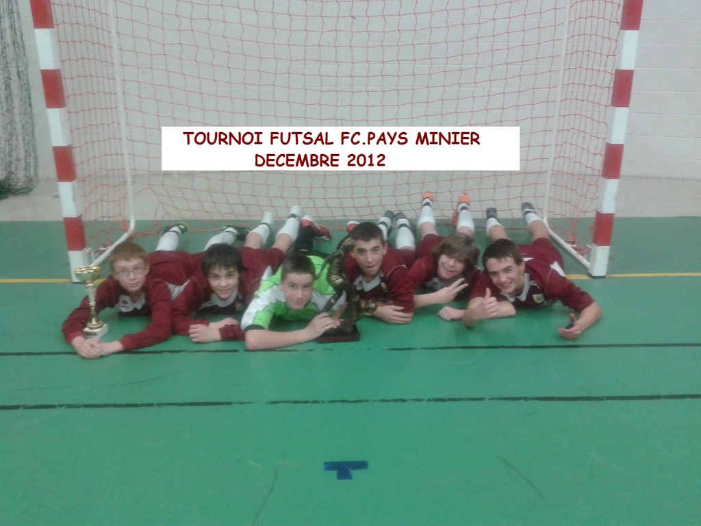 Vainqueur l’an dernier, nous remettons notre titre en jeu, la phase de poule est une formalité, nous terminons premier en battant l’équipe 2 de Frotey les Vesouls 3-0 (triplé d’Antoine) puis Valdoie B 2-0 (buts de Mickael et Kilian) ensuite Haute Lizaine 2-0 (buts de Kilian et Mickael) nous terminons sur un match nul 0-0 contre le Pays Minier. En demi-finale, nous disposons d’Arcey 1-0 après un match à sens unique (but de Kilian). En finale nous affrontons L’équipe une de Frotey les Vesouls, après une grosse frayeur en début de match suite à une frappe sur le poteau, nous prenons l’ascendant sur nos adversaires qui disposent d’un très bon joueur, qui tout au long du tournoi a fait la différence pour son équipe, mais pris en individuel par Grégory se retrouve complètement étouffé, et quand il peut se défaire du marquage il est pris par Killian ou Antoine. Juste avant la pause nous marquons l’unique but de la finale, Antoine réalise un coup du sombrero sur son adversaire, accélère le long de la ligne et centre en retrait pour Mickael qui n’a plus qu’à achever le travail. Deuxième mi-temps, nous dominons, deux frappes sur les montants d’Anthony et Antoine nous empêchent d’aggraver la marque, en toute fin de match, Alexandre réalise un superbe arrêt sur une frappe à bout portant, préservant la victoire.
