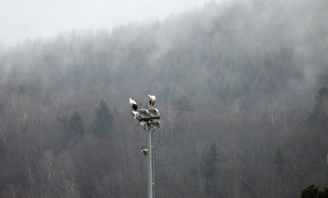 Cette semaine, il faisait pourtant bien frais sur GIROMAGNY, la neige était proche de tomber, ce qui n'a pas empéché de voir des cigognes. En effet 14 cigognes ont fait une halte sur la commune et ont pu se reposer sur les pylones du stade E. TRAVERS, ainsi que sur les toîts des logements de Territoire Habitat, qui jouxent le stade de foot.
