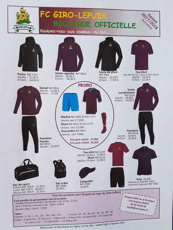 Retrouvez en "document joint", le bon de commande" de la boutique du FC GIRO-LEPUIX pour la reprise de la saison.