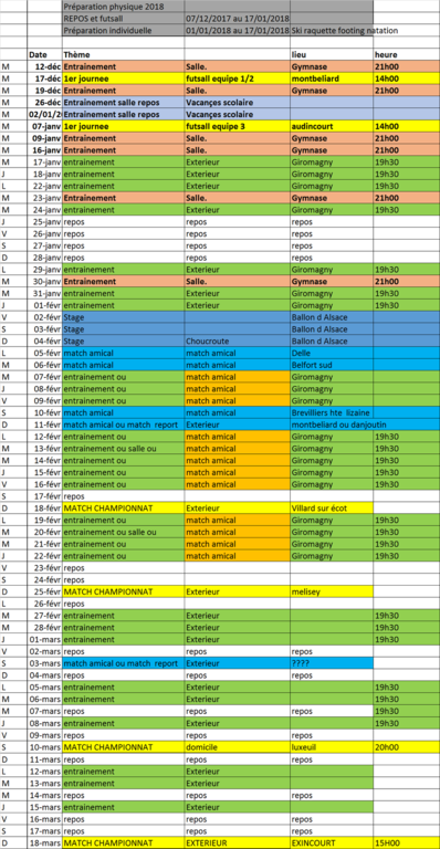 (Les modifications sont faites en gras avec le jour de la modif) Attention se rajouteront à cette planification les journées 2 et 3 de futsal district pour les équipes futsal 1 2 et 3