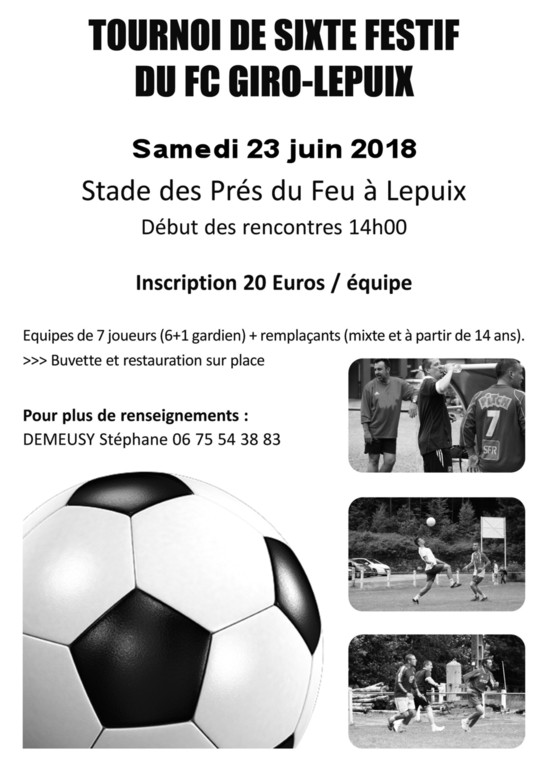 Comme chaque année, en préambule aux feux de la saint Jean, le FC GIRO-LEPUIX organise un tournoi de football à 6 au stade des Près du feu à LEPUIX.