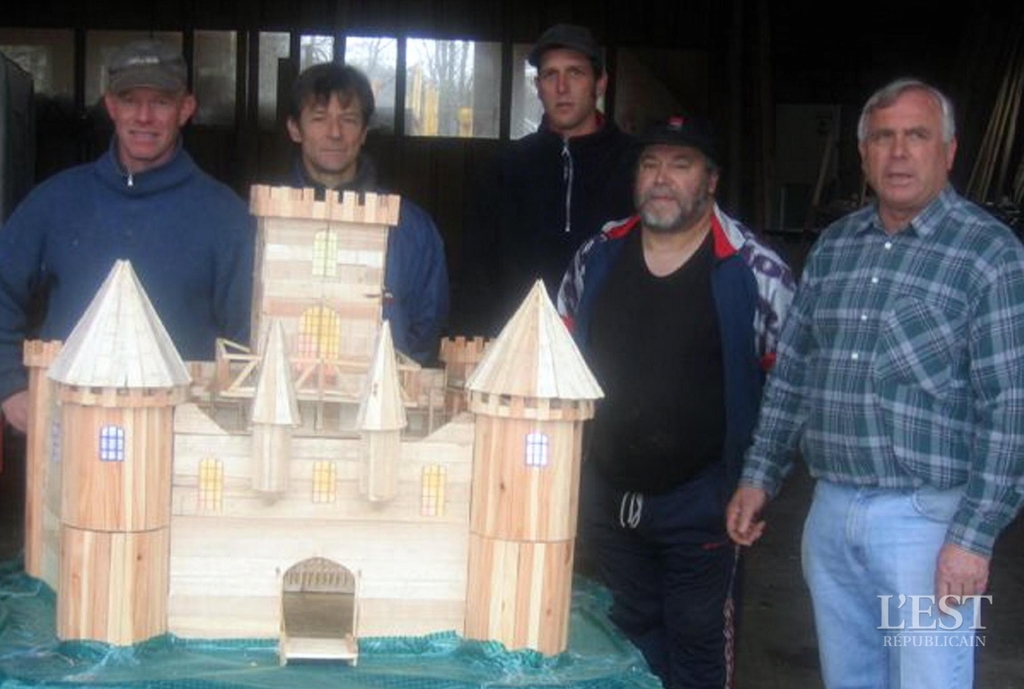 Gérard Clément (à droite) avec des bénévoles lors de la présentation de la maquette du château de la fée Odale pour le feu de l’édition 2006.