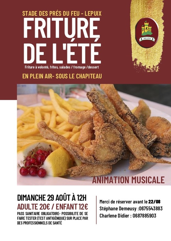 Le Dimanche 29 août, le club organise le midi, une friture en pleine air !