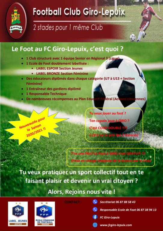 Le FCGL recrute dans toutes ses catégories pour la saison 2020/2021