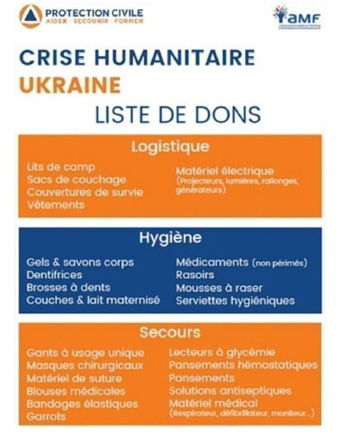 Vous n’êtes pas sans ignorer le drame qui se déroule actuellement à nos portes. Nous ne pouvons individuellement et collectivement rester insensibles à la situation catastrophique dans laquelle se trouve la population ukrainienne.